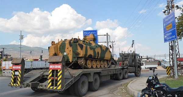 Hatay'ın Reyhanlı ilçesinde Oğulpınar mevkisine yaklaşık 15 araçlık tank sevkiyatı yapıldı.