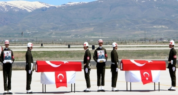 Şehitlerin öz geçmişlerinin okunması ve duaların edilmesinin ardından, tören mangası tarafından omuzlarda taşınan şehitlerin naaşı, memleketlerini götürülmek üzere askeri uçağa konuldu. Şehit Mehmet Gücüyetmez’in eşi hayat arkadaşını asker selamıyla uğurladı.