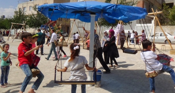 Her bayram olduğu gibi bu Kurban Bayramı’nda da çocukların eğlence merkezi olan bayram yeri, yine yoğun kalabalığa ev sahipliği yapıyor. Sabahın erken saatlerinden itibaren minik misafirlerini ağırlamaya başlayan bayram yerinde günün en sıcak saatlerinde dahi kalabalık eksilmiyor. Atlı ve tahta salıncakların sıra sıra dizildiği mekanda Türk ve Suriyeli çocuklar gönüllerince bir bayram geçirmenin keyfine varıyor.