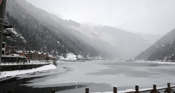 Türkiye’nin ve Doğu Karadeniz Bölgesi’nin en önemli turizm merkezlerinden biri olan Uzungöl şiddetli soğuklar ve kar yağışı sonrasında dondu.