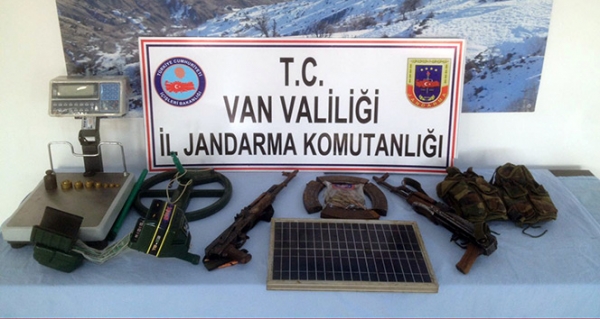 Van İl Jandarma Komutanlığından yapılan açıklamada, elde edilen istihbari bilgiler doğrultusunda Başkale ilçesine bağlı Savaş Mahallesi’nin Aşağı Durak mezrasındaki 3 ev ve eklentilerinde arama yapıldığı belirtildi. Başkale İlçe Jandarma Komutanlığı ekiplerinin de katıldığı operasyonda; 2 adet Kaleşnikof marka uzun namlulu piyade tüfeği, 106 adet Kaleşnikof piyade tüfeği fişeği, bu silahlara ait 4 adet şarjör, 1 adet hücum yeleği, 1 adet terazi, 1 adet metal arama dedektörü, 1 adet güneş paneli ele geçirildi. 3’ü İran uyruklu olmak üzere 4 şüpheli şahıs gözaltına alırken, soruşturmanın devam ettiği bildirildi.